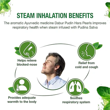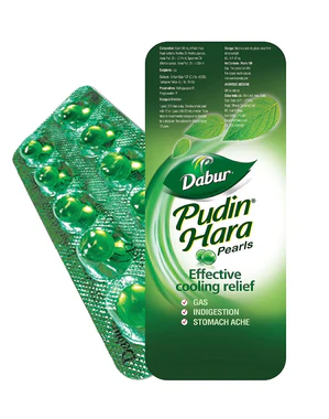 Dabur Pudin Hara Pearls is an Ayurvedic capsule that helps relieve indigestion, gas and acidity. With Pudina Satva as the main ingredient, it provides quick and effective relief from stomach ailments. It helps reduce indigestion and enhances digestion and provides effective cooling relief from digestive ailments. When taken with steam inhalation, this aromatic Ayurvedic capsule also improves respiratory health and provides effective relief from nasal congestion. It helps provide the body with much-needed warmth and relieves cough, cold and blocked nose as well.